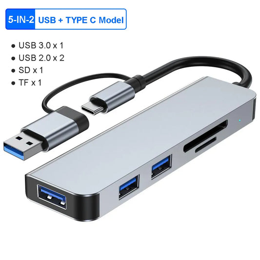 High-Speed 8-IN-2 USB Hub 3.0 USB-C Hub Dock Station with 5Gbps Transmission, USB Splitter, Type C to USB OTG Adapter for MacBook